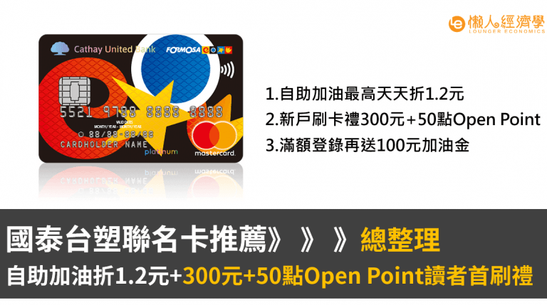 台塑聯名卡:自助加油天天折1.2元+300元&50點Open Point讀者首刷禮!