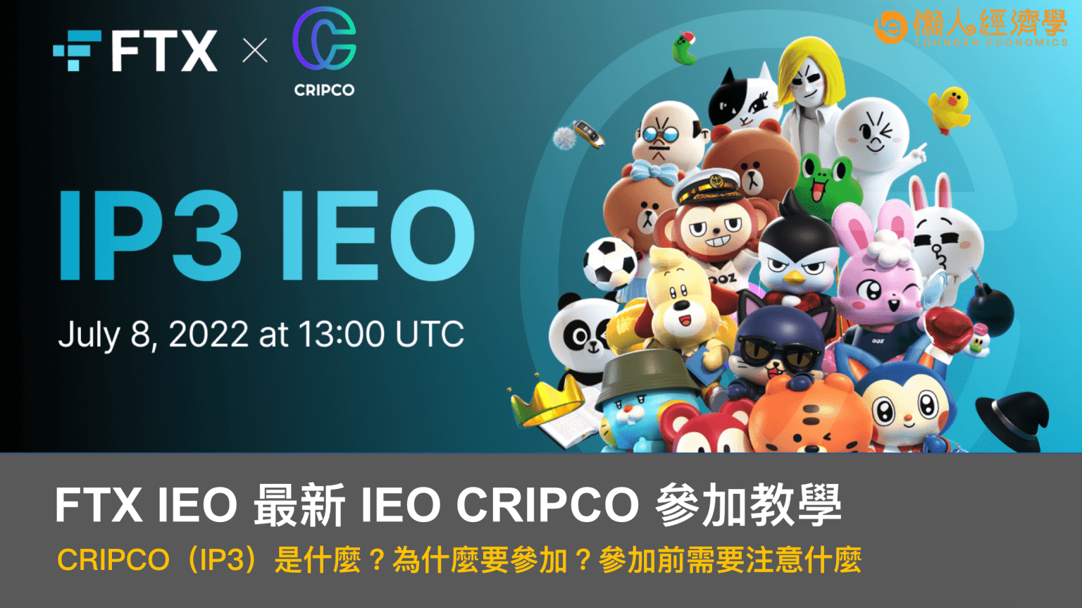 本次 FTX IEO 項目為 CRIPCO,代幣名稱為 IP3,自 CRIPCO 官方網站與預告影片顯示,CRIPCO 是建立於 Solana 鏈上的 IP 3.0 網路聚合平台,目前已宣布與 IPX 合作(前身為 LINE FRIENDS),因此我們將來可以在 CRIPCO 中看到 IPX 旗下的角色與貼圖。