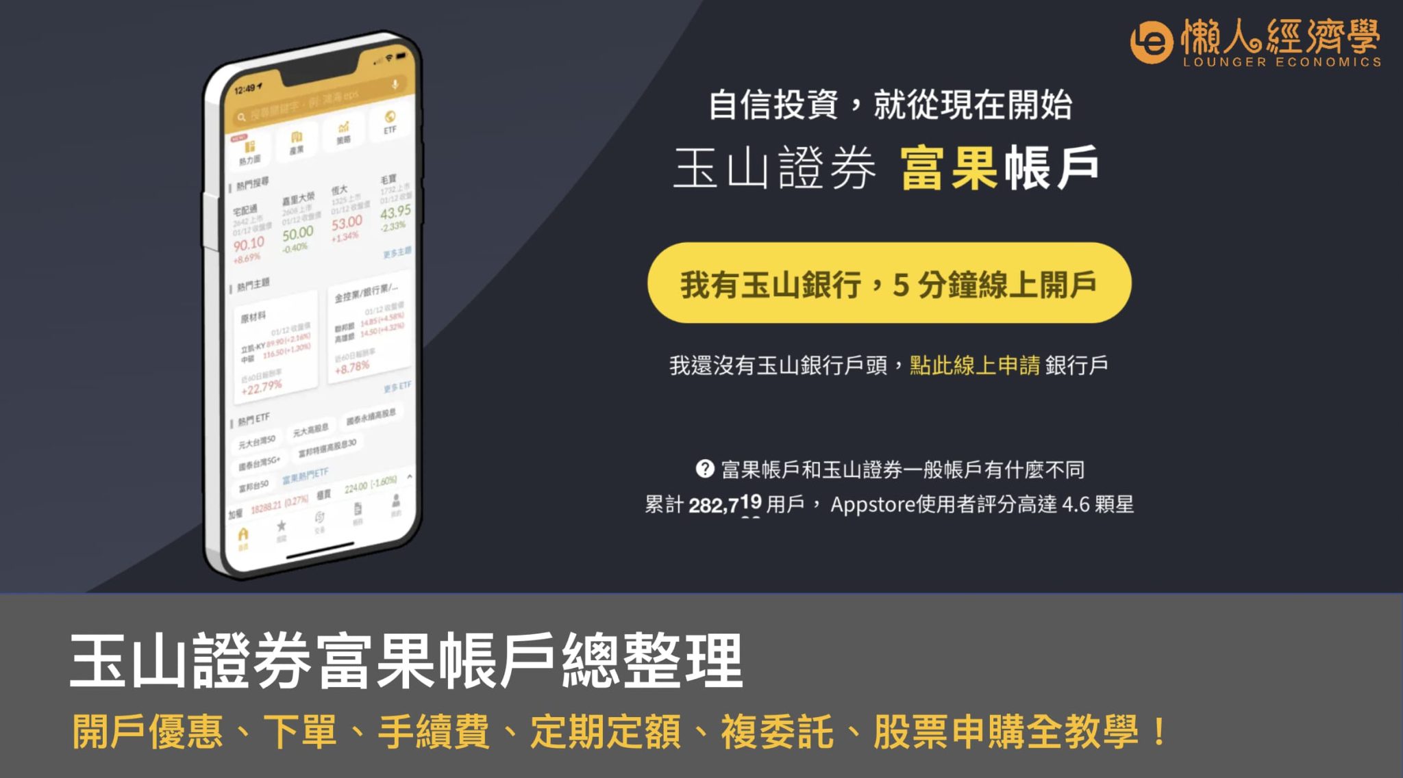想要獲得玉山證券 Fugle 富果帳戶開戶優惠,可以直接使用懶人經濟學的 專屬連結 開戶就可以囉!或是輸入 推薦碼 f-6c7f590 也可以。