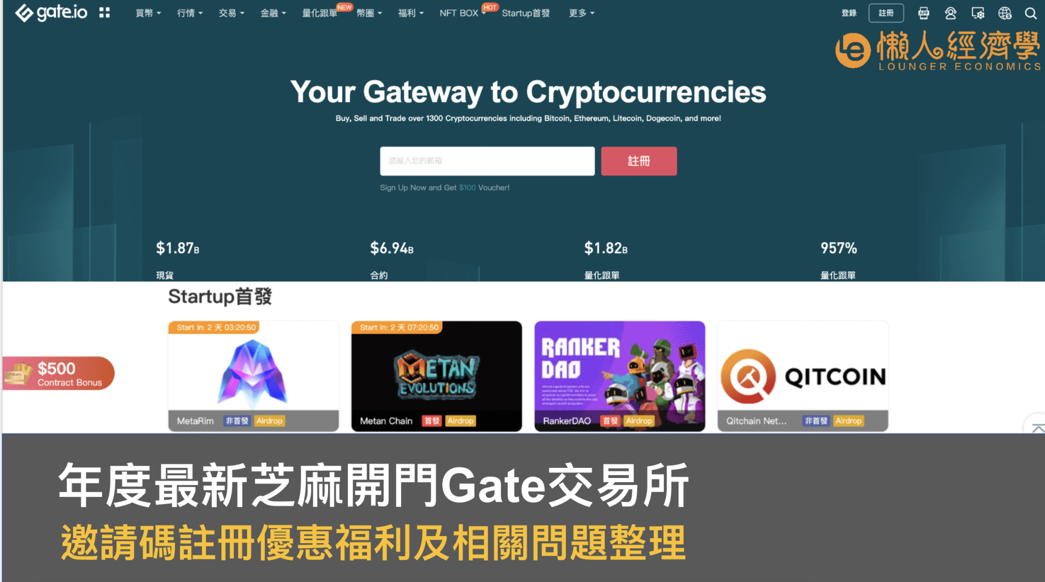 除了Gate之外,懶人經濟學也與許多交易所進行合作,並爭取到許多全網最優讀者福利。