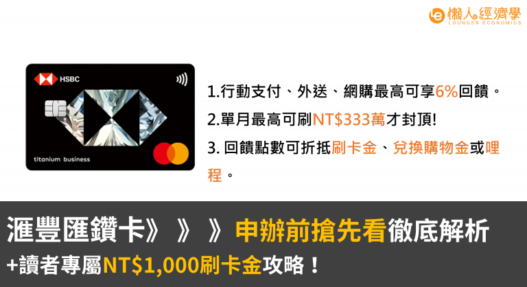 匯豐匯鑽卡完整指南:行動支付最高可享6%無上限現金回饋+讀者專屬NT$1,000刷卡金攻略!
