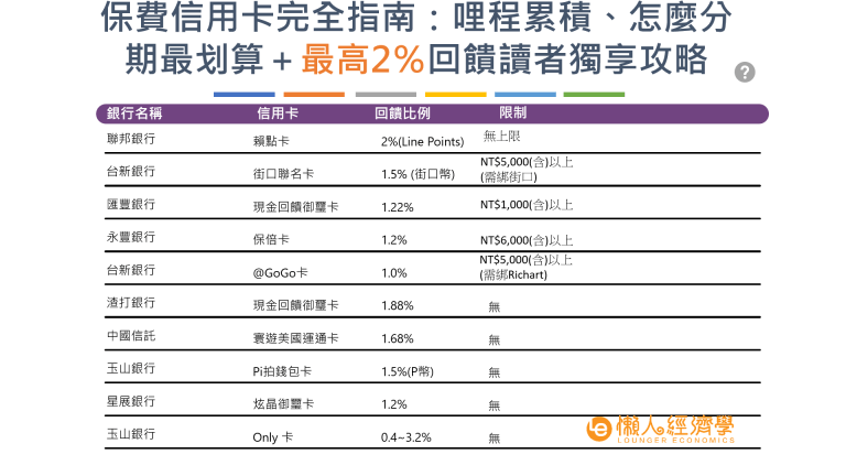 如果你在找更全方位的信用卡的話,也可參考小賈之前整理的文章: