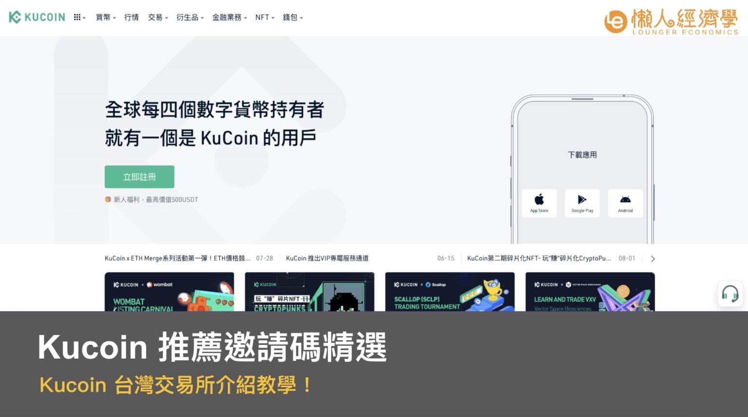 透過懶人經濟學的推薦邀請碼連結 Kucoin 交易所,就可以領取跑任務拿真U,入金買幣滿額就送 500 U 資格!( 優惠不定期更新 )