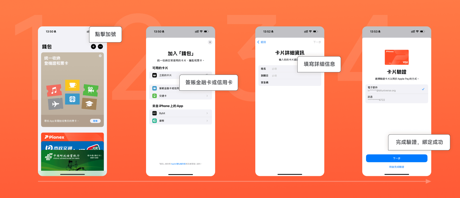 2. 綁定電子錢包: 為了實現線下或實體店鋪消費,需要將 Pionex Card 虛擬卡資訊綁定至主流的電子錢包,如:Apple PayGoogle Pay