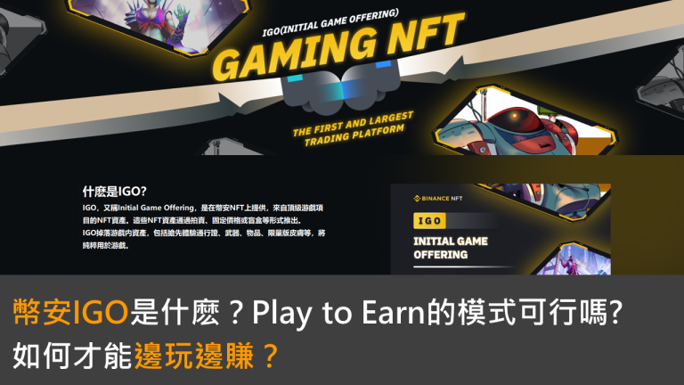 幣安IGO(Initial Game Offering,初始游戲產品)是幣安推出的初始游戲產品銷售,主要是讓用戶在幣安NFT平台上通過拍賣、固定價格、盲盒等方式獲得來自頂級游戲項目的游戲内NFT資產。到底如何才能邊玩邊賺?這篇文章將介紹如何通過幣安IGO以及幣安NFT來實現邊玩邊賺。