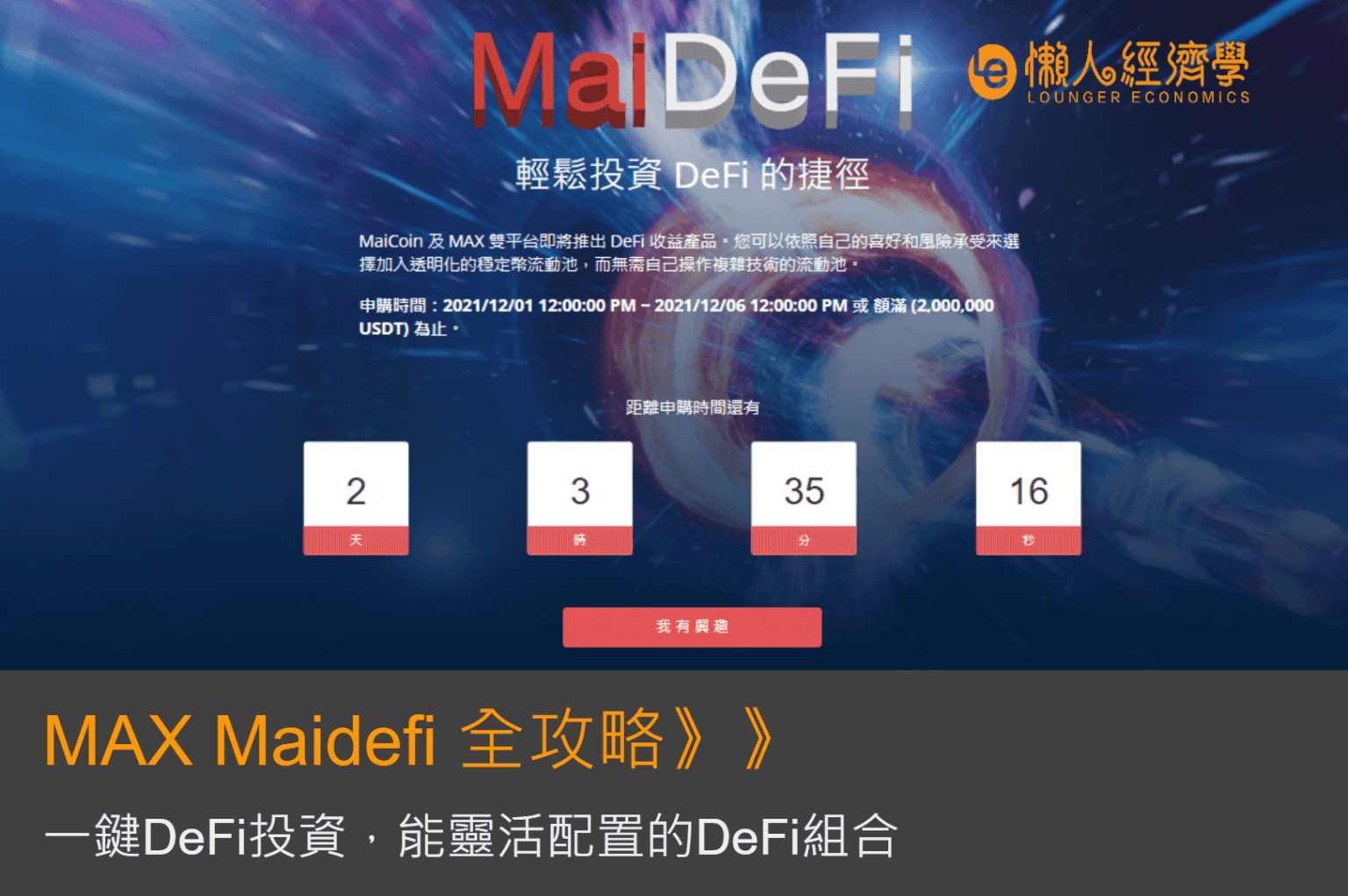 MAX MaiDeFi申購時間從2021/12/01 開始 至 2021/12/06 晚上12點:00分