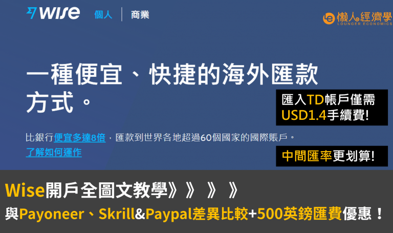 現在透過懶人經濟學的Wise推薦連結註冊,還能夠省下GBP$500的交易手續費喔!